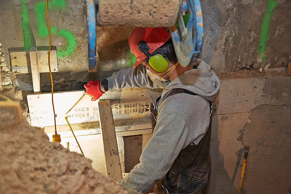 Our Process: Investigation,Planning, Drawing& Construction THE STEPS THAT GUIDE US    W  hile construction is full of unknowns, we  keep our process transparent. With each new challenge we combine creative on-site problem solving with thorough planning and management; controlling costs and reducing risks along the way.  We clearly outline the steps for our clients, keep them informed of our progress, addressing concerns. The Investigation PhaseThe existing condition of the building and site greatly affects the feasibility of underpinning. We start by investigating the nature of the foundation system, the soil, the building structure, the adjacent properties and surrounding site. We check the condition of foundation wall,  determine the pressure of the soil on the existing foundation, and check how the structural loads are distributed. We search for cracks or apparent settling, and in the case of an abnormality, we enlist a qualified geotechnical engineer to conduct a soil investigation. Combined with a drawing review, this information is invaluable in determining the best and most cost-effective design and stabilization method for the underpinning before excavation starts. The Planning PhaseOnce we've gathered all of the existing documentation and conducted soil tests, we set out a clear and detailed plan of action. This includes an estimate of costs and risks. and how to address each issue. At this stage we decide on the best approach, the necessary equipment, and whether shoring or temporary stabilization is required. Our extensive experience with challenging projects allows us to find creative ways to provide high value at an economical cost. We provide a detailed quote for our clients to review. Once confirmed, we assemble the right team from our trusted network of experts and hold our first team meeting to discuss the scope of work.  Design Drawings & DocumentationWe engage an architect and structural engineer to prepare drawings that include all of the information discovered in the investigation phase. These documents show the construction technique, the width of the excavation pits, the reinforcement, columns, beams and footings. We typically take extra precautions - reducing the width of standard excavation pits and specifying additional bracing and support depending on the specific site conditions. Next, we submit drawings and documentation for permit and co-ordinate inspections in order to move forward with the job. Construction PhaseEven with diligent investigation and comprehensive design documents, the success of any project ultimately depends on the proper execution of the work. Underpinning is done in stages to maintain the structural integrity of the building above, but too frequently, accidents result from the excavation advancing more quickly than the underpinning. We avoid this by precisely co-ordinating our excavations and underpinnings with routine safety inspections by our structural and soil engineer, as well as the  building inspector when required. We plan out all of the critical activities in sequence, and then work as an integrated team to dig, monitor, and pour. After the underpinnings are in place, we carry out a water management plan to protect the basement from moisture. We apply a water proofing membrane to the interior face of all  exterior foundation walls, and we install gravel, weepers, a sump pump/pit and new underground sanitary drains. Underpinning provides a clean slate - an opportunity to reconfigure the plumbing in a house and change the location of the kitchen or bathrooms above.We insulate the new concrete slab, and provide our clients with the option to add radiant floor heating.  ComplexitiesDigging down we've found just about everything: large boulders, pipes, underwater streams and rivers, bones, horseshoes, axes, bottles, horse shoes. These surprises can sometimes add complexity and delays to job, and over the years we've learned to creatively overcome these problems and limit additional costs. In tricky situations, we benefit from owning specialized equipment that allows us to immediately deal with unforeseen issues, as they arise.  Our EquipmentMany of the most challenging jobs are possible because we own and operate a fleet of highly specialized equipment, sized for tight access downtown sites. We use our mini diesel and electric excavating equipment and conveyors to get dirt out, and our in-house concrete pump gets concrete in.  Using this pump allows us to provide consistency in the concrete mixes that we pour, and consistent drying times as the underpinning progresses. Having this equipment on hand improves the quality and efficiency of our work, and allows us to control costs while provide savings to our clients.